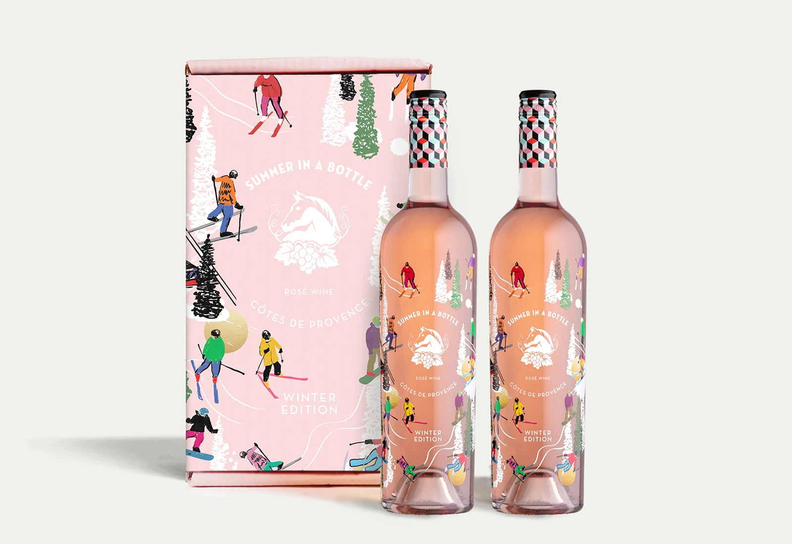 Featuring two bottles of our signature wine with a limited-edition, winter-themed design. Adorned with skiers, it delivers the crisp, vibrant flavors in a festive holiday package to be enjoyed après mountain.