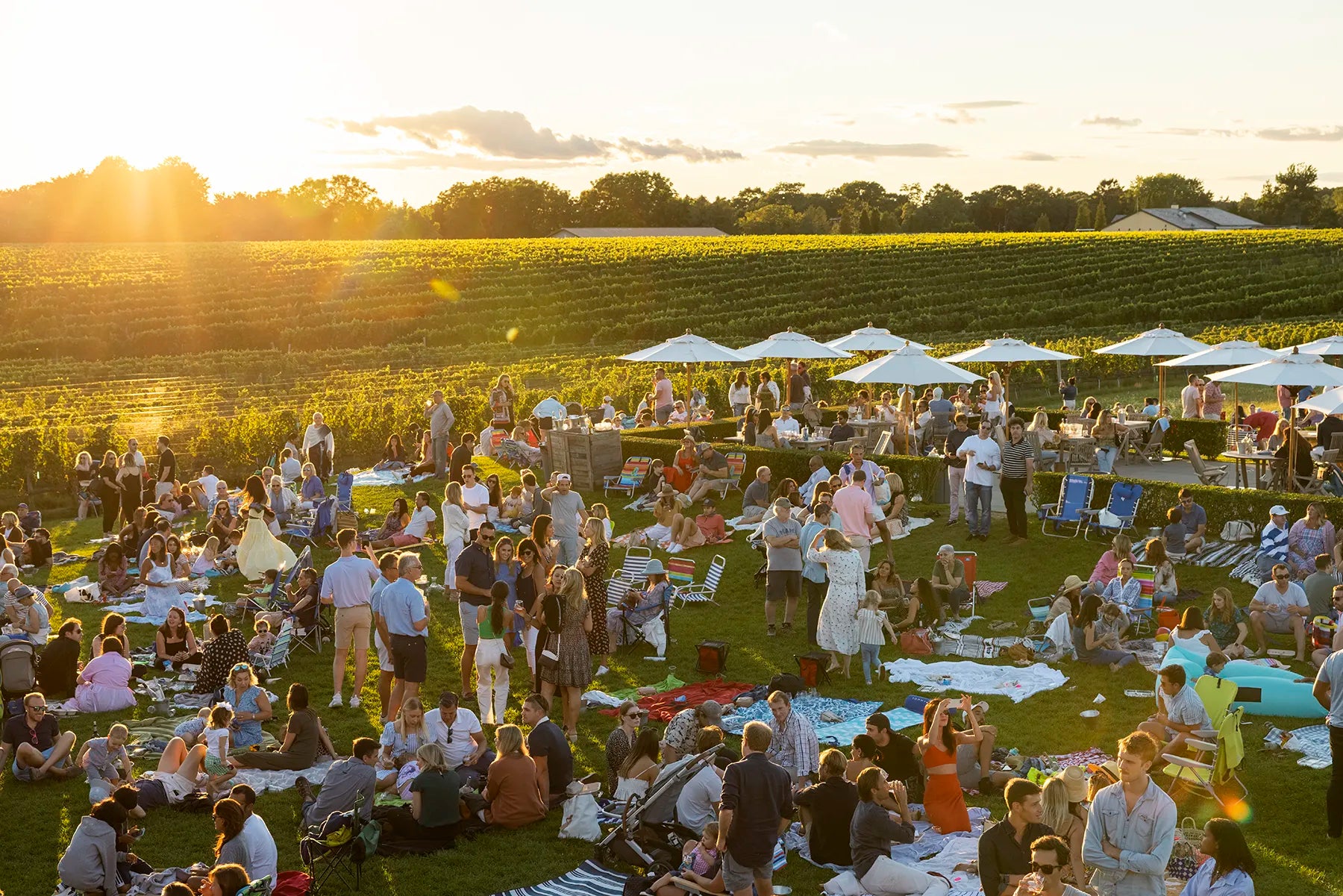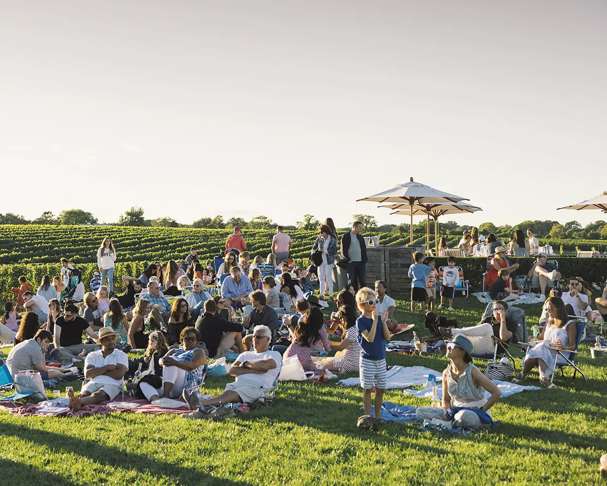 Perched atop a gentle rise, the Wölffer Estate Wine Stand is one of the East End’s most beloved spots, where friends gather, music drifts through the vines, and golden sunsets turn every glass into something unforgettable.